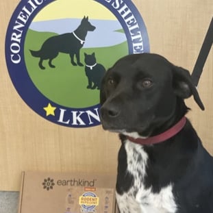 Benny our latest shelter pup who has taken a liking to being an EarthKind® ambassador!