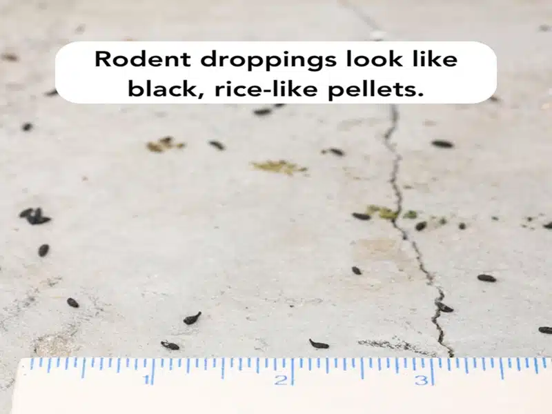 - – Mouse droppings: Small, dark pellets around food sources, in cupboards, or along baseboards.